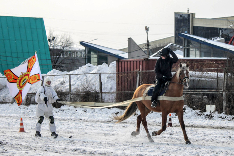 На старейшем дальневосточном ипподроме в амурской столице в тот же день состоялся конно-лыжный забег, или, как еще называют эту дисциплину, скиджоринг. Организатор соревнований — Федерация конного спорта Амурской области и ДВОКУ. Участники — спортсмены конноспортивного клуба «Аллюр», Благовещенского ипподрома, частные коневладельцы. Соревнования открылись показательными выступлениям по джигитовке, а затем 21 участник вышел на старт.