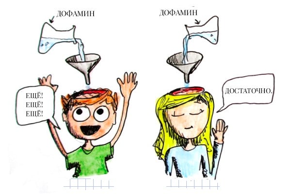 Чтобы разобраться в вопросе, надо вспомнить, что такое дофамин. Дофамин — это нейромедиатор (то есть химическое вещество, передающее сигналы от нейронов мозга к клеткам тела и обратно), который играет важнейшую роль в процессе обучения. Он вознаграждает нас чувством удовольствия, если мы сделали что‑то, что помогает нашему организму выжить и передать свои гены дальше.