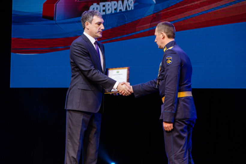 — Для россиян 23 Февраля — праздник народного масштаба. Во все века на Руси чтили защитников нашей Родины. И вся история российского государства, все успехи нашей страны неразрывно связаны с успехами русского оружия, советской и российской армии, — сказал в приветственном слове глава региона. — Я хочу поблагодарить за помощь, которую армия оказывает в гражданской жизни. В прошлом году Вооруженные силы оказывали помощь в предупреждении и ликвидации очень крупного наводнения – строились дамбы, помогали в эвакуации людей, дезинфекции, оказывали помощь военной техникой, которая была задействована в ликвидации последствий наводнения. Не могу не сказать и о коронавирусной инфекции – Вооружённые силы передавали нам кислород, который использовался в ковидных госпиталях, помогали медиками. Ещё одно важное событие – в прошлом году началось строительство второй ветки БАМа — очень сложной и очень важной стройки, на которой работают железнодорожные войска. Я хочу пожелать успехов, здоровья и благополучия вам и вашим семьям и мирного неба над головой.