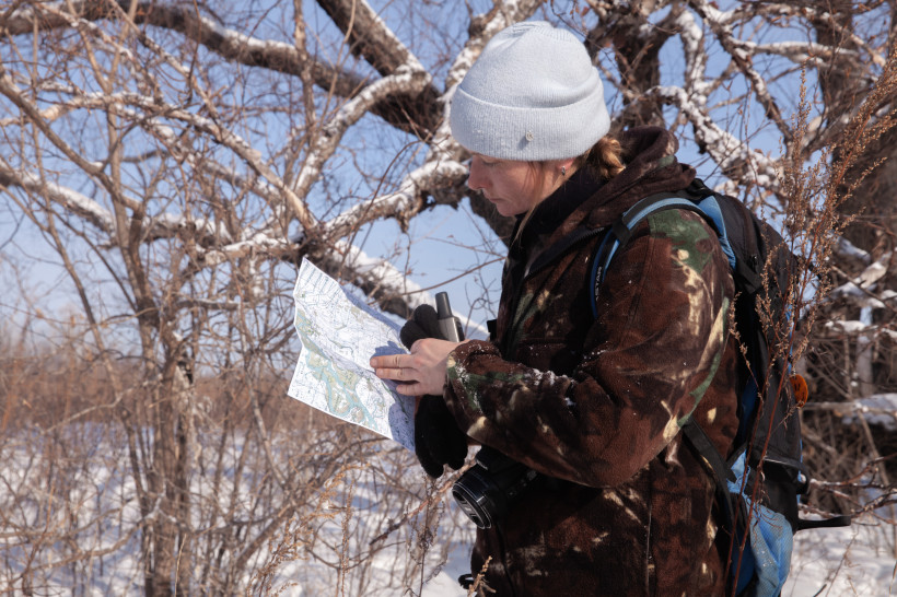 С паузами, слегка сбитой «дыхалкой» и мокрой спиной добираемся до места назначения – здесь обнаружены следы Амбы двухдневной давности. Достоверность этого подтверждается координатами (выпущенная в дикую природу тигрица носит специальный ошейник с GPRS). Сотрудники охотуправления получают координаты от Центра «Амурский тигр», вносят их в навигатор – важный рабочий инструмент охотоведа – и при наложении на карту определяют место.