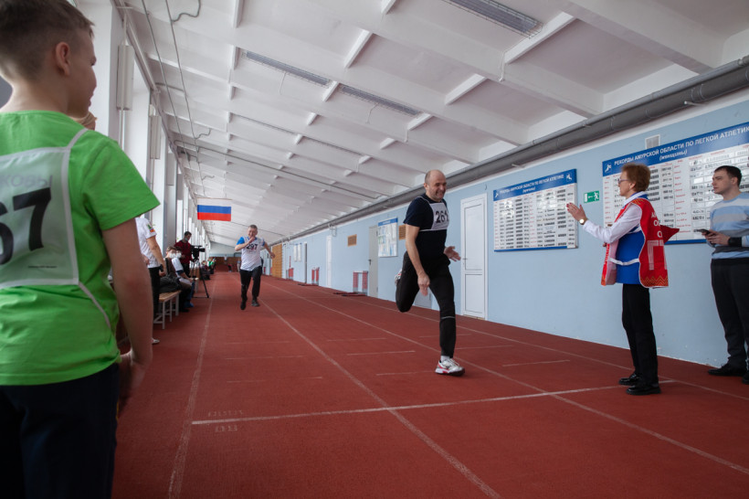 «Беги, беги изо всех сил! Беги быстрее, чем можешь! Давай! Молодец!» — в легкоатлетическом манеже стадиона «Амур» оживление. На красной беговой дорожке тройки участников не бегут, а мчатся. По трое спортивных мужчин на старте, тройки женщин, мальчики и девочки тоже бегут по трое: кто-то дерзко и профессионально, кто-то аккуратно и даже кокетливо. Все очень разные и очень довольные. И не подумаешь, что здесь у семейных команд со всей области нормативы ГТО принимают строгие судьи.