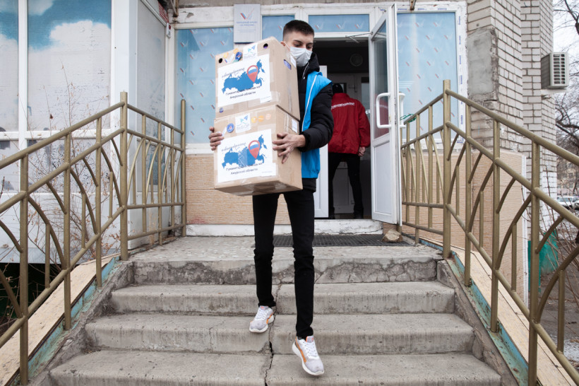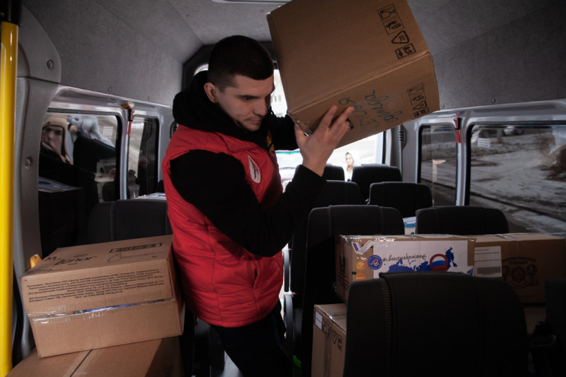 Гуманитарный груз собирали всем миром. Тут и содержимое «тележек добра», установленных Народным фронтом в 11 крупных супермаркетах Благовещенска, и коробки с консервами от профсоюзов Приамурья, и то, что люди просто приносили сами. Буквально накануне вечером перед отправкой молодая пара передала в отделение ОНФ пакет продуктов.
