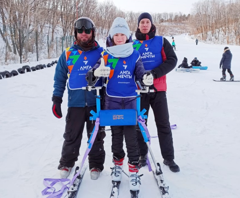 На горнолыжной базе «Сопка «Беличья» под Благовещенском занимаются десять детей от 12 лет и старше. Они два раза в неделю посещают бесплатные занятия, поднимаясь на невысокие склоны, обучаясь держать равновесие в необычных ситуациях. На средства гранта были закуплены специальные тренажеры: слайдеры — это специальная рамка, куда закрепляется человек, и аутригеры — это лыжная палка с мини-лыжей на конце.