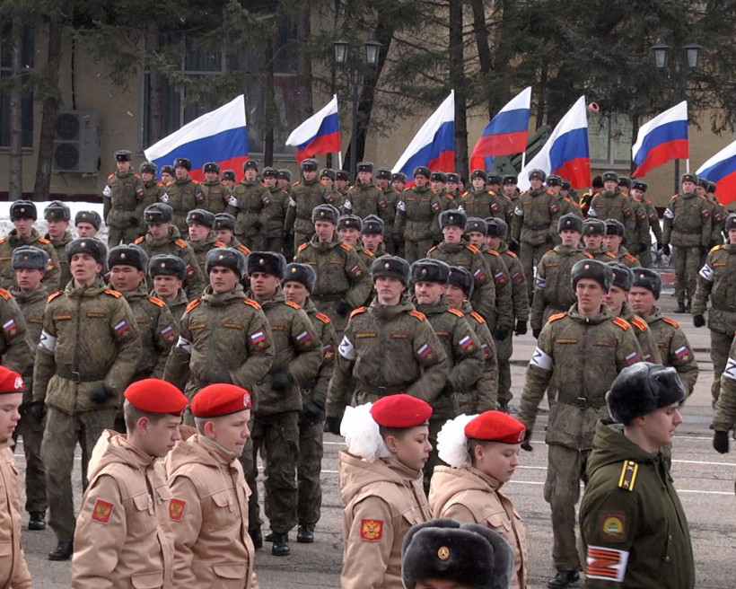 К масштабной патриотической акции «Сила V правде» в Благовещенске Амурской области присоединились курсанты (ДВОКУ) и юнармейцы одного из учебных заведений города.