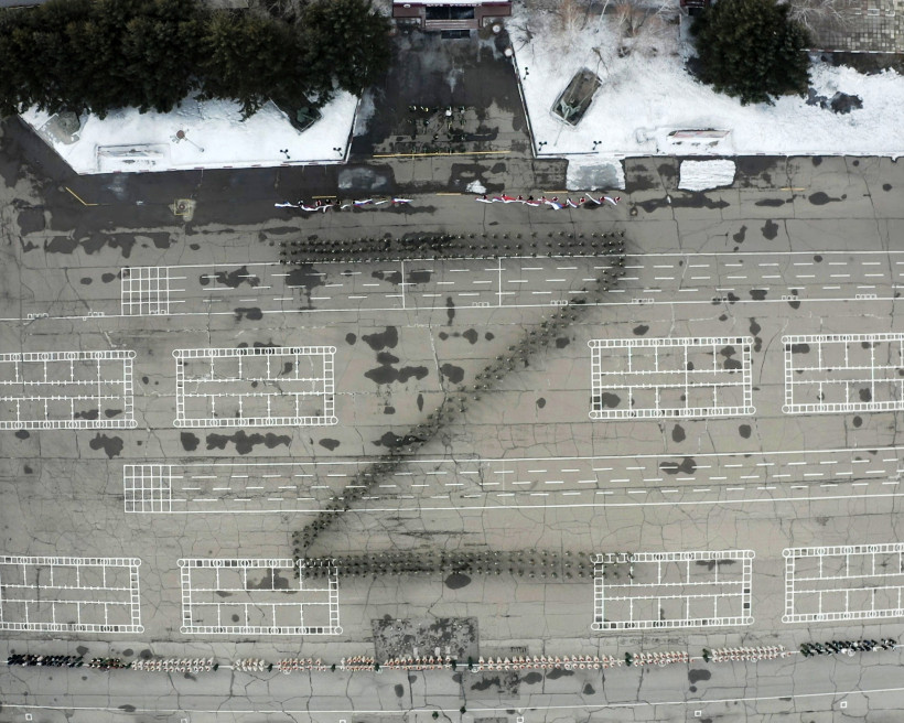 Участники акции выстроились в символ Z в знак солидарности с военнослужащими, выполняющими задачи в военной спецоперации на Украине.