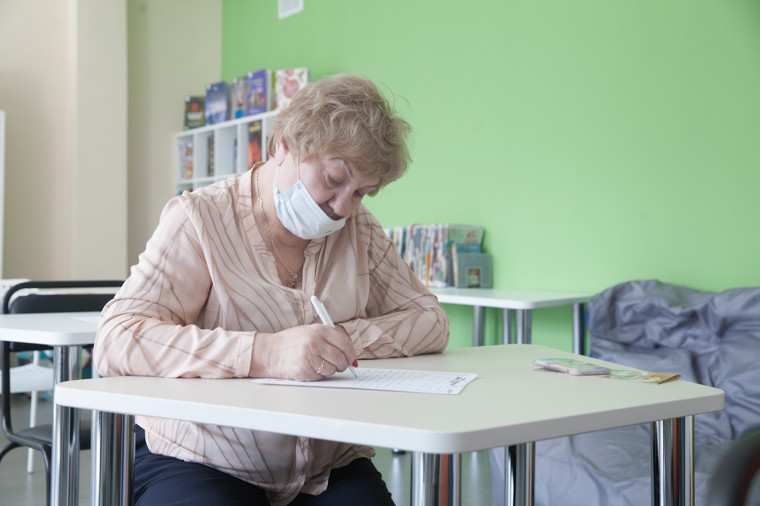 Дарья Лазарева писала диктант практически без отрыва от работы, ведь она — библиотекарь в зале взрослого абонемента.