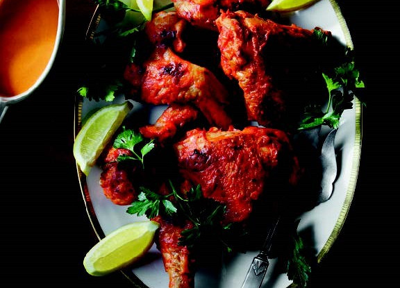 Курицу разделать на порционные куски и снять кожу. В глубокой сковороде на медленном огне растопить сливочное масло. Добавить измельченный лук и готовить, периодически помешивая, пока он не размягчится и не подрумянится (примерно 5–7 минут). Добавить паприку и соль, хорошо перемешать, затем залить томатный соус и воду. Положить куски курицы на сковороду, несколько раз перевернуть, чтобы они как следует покрылись соусом. Довести до кипения, затем убавить огонь, чтобы смесь продолжала слегка бурлить, накрыть крышкой и тушить 45–60 минут, пока курица не будет готова. Если смесь начнет прилипать к сковороде, долить воды, но не разбавлять соус слишком сильно — для следующего этапа он должен быть густым. Выложить курицу на теплое сервировочное блюдо. В соус добавить сливки, как следует перемешать и прогреть, не давая закипеть. Процедить соус через мелкое сито в соусник. Украсить курицу дольками лимона и петрушкой и подавать к столу вместе с соусом в соуснике.