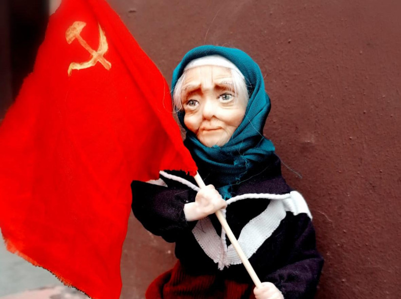 Миниатюрную копию старушки с советским флагом, видео которой облетело все соцсети в начале апреля, сделала жительница Благовещенска Наталья Боловинцева. Многодетная мама занялась творчеством 12 лет назад, будучи в декрете: из полимерной глины лепила кружки, украшения, игрушки. Как и многие, горожанка не смогла остаться равнодушной к поступку пожилой жительницы украинского села, которая вышла с красным флагом к украинским военным, и сделала так похожую на нее куколку.