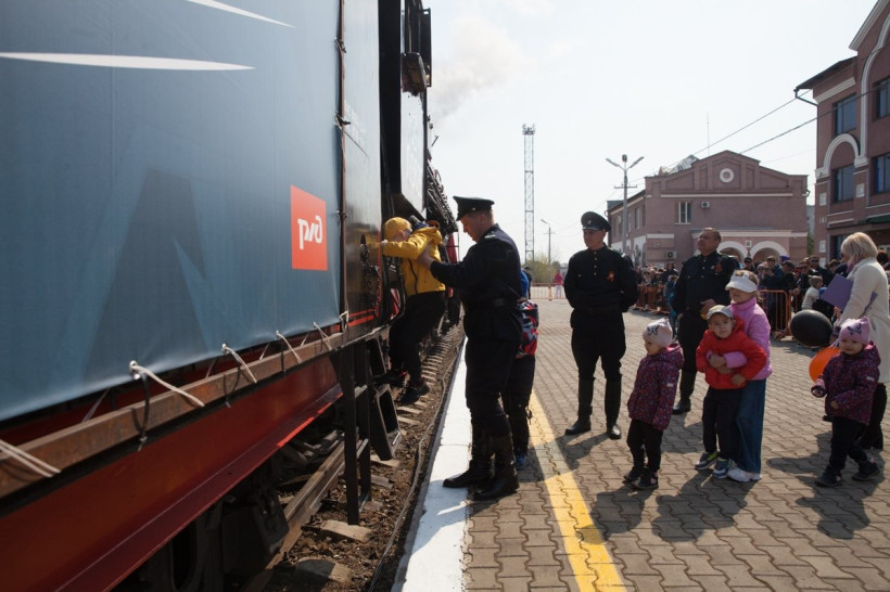 С 1 по 9 мая состав сделает 12 остановокВ воскресенье, 1 мая, из Благовещенска по крупным населенным пунктам Амурской области и Забайкальского края отправился в путь ретропоезд «Победа». Состав пройдет маршрут длиной 1 775 километров и сделает 12 остановок. На каждой станции местных жителей ждут праздничные программы, концерты и торжественные митинги.