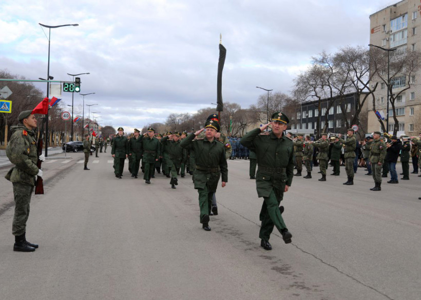 В Благовещенске прошла репетиция парада с участием военнослужащих и курсантов ДВОКУ