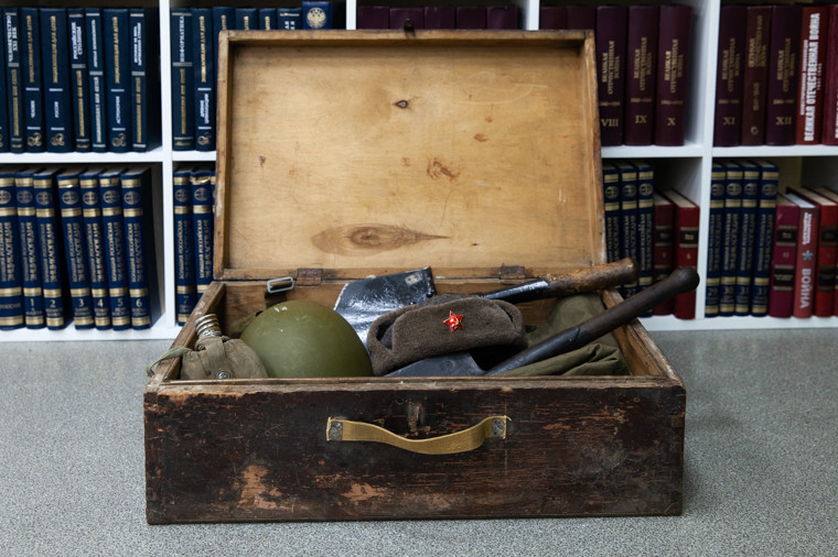 Ложка, которой ел красноармеец, фонарик немецкого воина, солдатская шапка-ушанка вошли в военный чемоданчик амурского коллекционера. «У меня дед воевал. Его рассказов наслушался, поэтому и появился такой интерес к периоду Великой Отечественной, — говорит начальник Благовещенского районного отдела Амурского филиала ФГБУ «Россельхозцентр» Павел Жирнов. — К счастью, сегодня появилось много интернет-площадок, где можно приобрести подлинные военные вещи». За несколько лет Павлу удалось собрать большую коллекцию, которой могли позавидовать многие музеи. Раз в год перед Днем Победы он на время передает часть своей военной экспозиции сотрудникам библиотеки имени Б. Машука в Благовещенске, а те в свою очередь оформляют стенд на набережной, чтобы с артефактами Великой Отечественной смогли ознакомиться все желающие. Поддержали в руках вещи времен войны и журналисты «Амурской правды».
