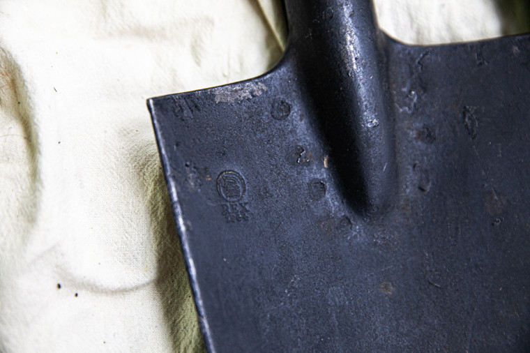 Есть в коллекции у Павла и две пехотные лопатки — немецкая и советская. На первой можно разглядеть клеймо и дату выпуска — 1944 год.