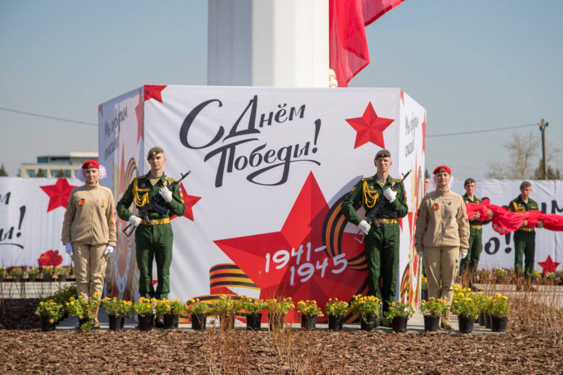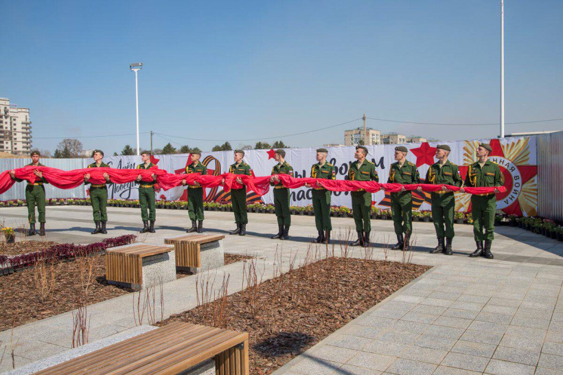 На набережной амурской столицы 8 мая на флагшток подняли копию Знамени Победы — штурмового флага 150-й ордена Кутузова II степени Идрицкой стрелковой дивизии. В торжественной церемонии приняли участие официальные лица города, в том числе губернатор области Василий Орлов, мэр Благовещенска Олег Имамеев, депутаты Заксобрания и Благовещенской гордумы, руководители силовых структур, курсанты ДВОКУ, юнармейцы.