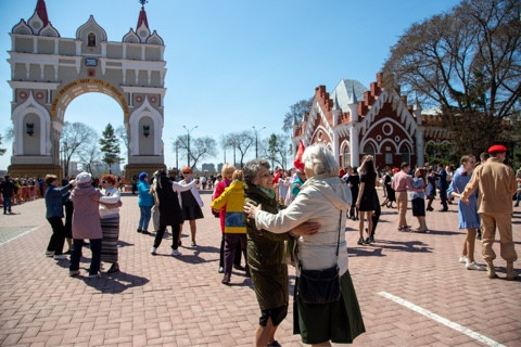 Почти 600 человек станцевали в Благовещенске вальс Победы (видео)