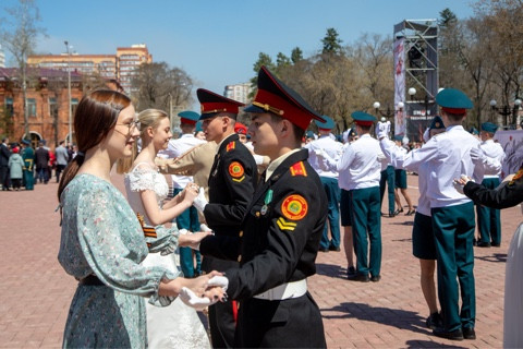 Почти 600 человек, или 300 пар кружились в вальсе Победы накануне в амурской столице. Ежегодная патриотическая акция прошла по традиции на площади Победы.