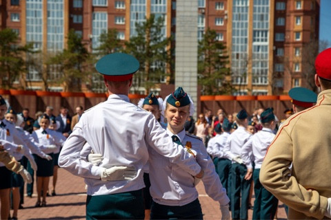 Первыми на импровизированную танцплощадку вышли кадеты из лицея № 6, почти 200 пар, рассказали в мэрии.