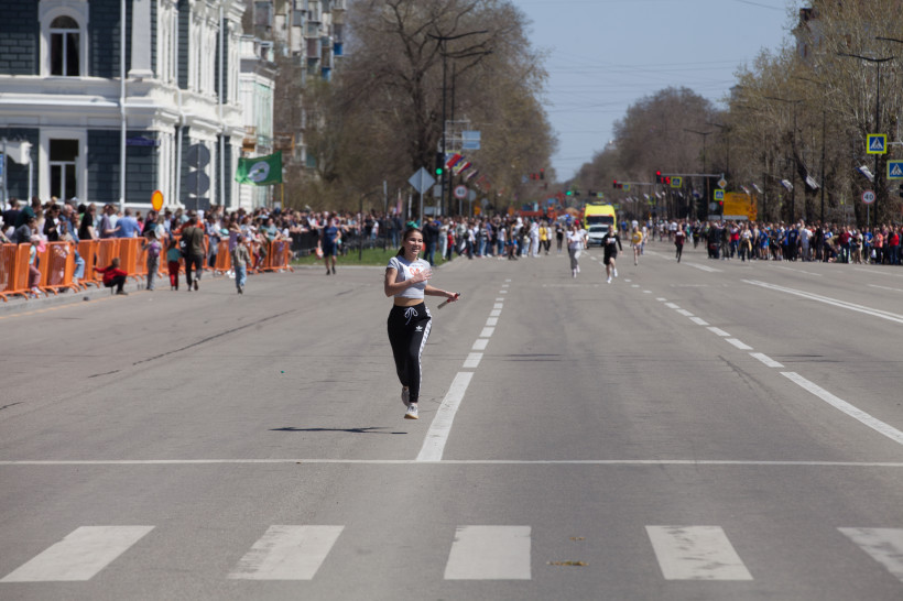 850 человек пробежали 9 мая «победную» легкоатлетическую эстафету на призы «Амурской правды». Зрители по традиции ожидали, смогут ли постоянные фавориты — девушки из БГПУ и курсанты ДВОКУ — сохранить за собой славу чемпионов. За схваткой бегунов с азартом следили, а также громко болели и журналисты старейшей газеты области.