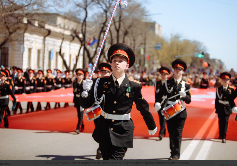 Около 75 тысяч человек в Амурской области пронесли портреты своих родственников, участвовавших в боях Великой Отечественной и приближавших победу своим трудом в тылу. Бессмертный полк через два года перерыва вновь вышел на улицы городов и сел. В Благовещенске в колонне прошли почти 30 тысяч человек, сообщили в пресс-службе регионального «белого дома». Участие в шествии принял и губернатор Приамурья Василий Орлов. Вместе с супругой он пронес штандарты, на которых портреты дедов — Виктора Орлова и Андрея Сопронюка.