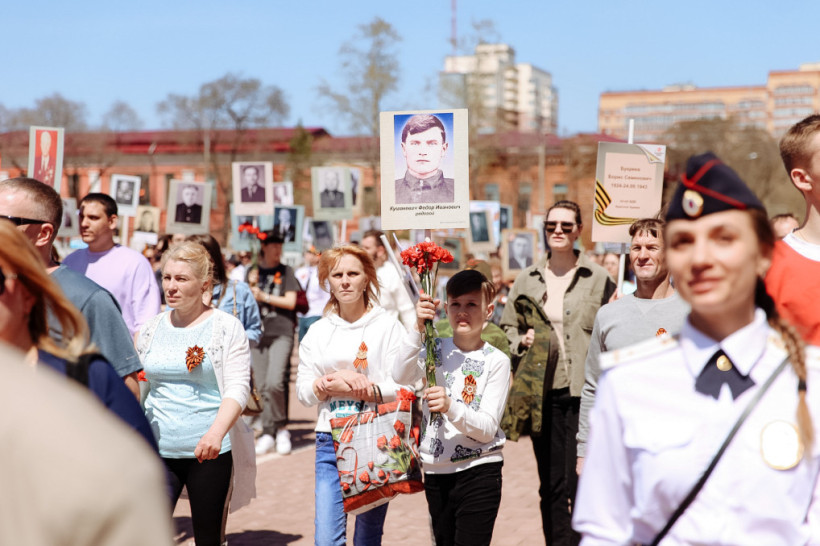 Впервые за два года перерыва в Бессмертном полку в Приамурье прошли почти 75 тысяч человек