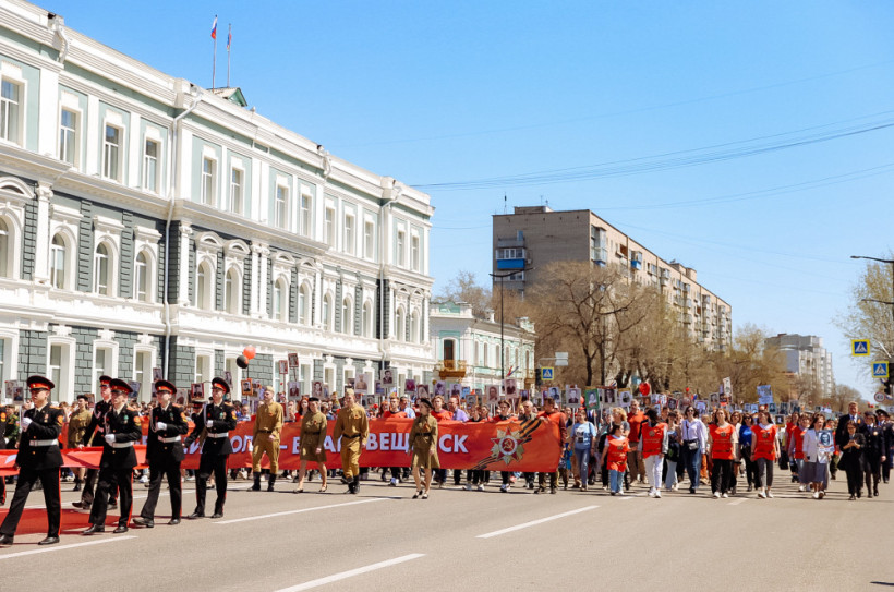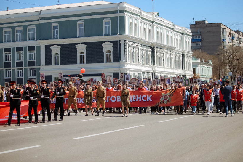 Благовещенцы и гости города прошли с портретами родных и близких по главной улице Ленина от Шимановского до площади Победы.