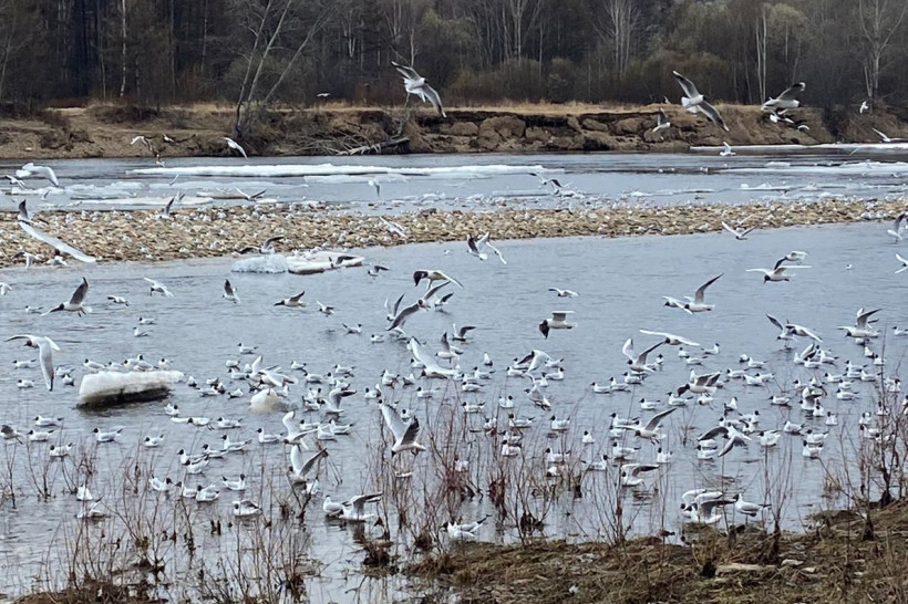 Побережье реки Тында превратилось едва ли не в морское — обильное количество чаек кружит над водой. Птицы, скорее всего, мигрируют, предполагает биолог-охотовед Антон Сасин. Май — самый пиковый для этого месяц.