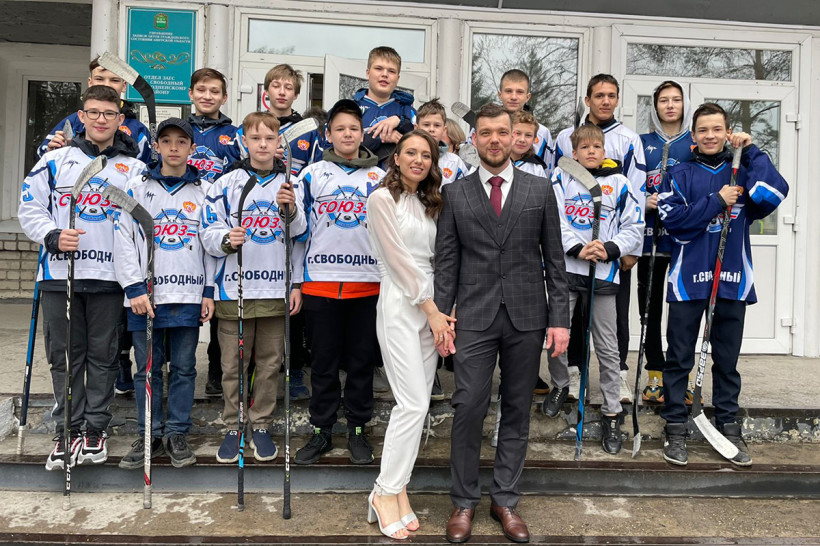 Необычный и очень символичный подарок преподнесли своему тренеру в день свадьбы воспитанники свободненского хоккейного клуба «Союз». 11 мая после церемонии бракосочетания молодоженов Сергея и Светлану Лебец в фойе загса ждали юные спортсмены с аркой, сооруженной из клюшек, и громкими криками: «Поздравляем!» «Мы со Светой и не подозревали, что дети придут нас поздравлять, да еще и так романтично, — рассказал «Амурской правде» Сергей. — Это было большим и очень приятным сюрпризом для нашей пары».