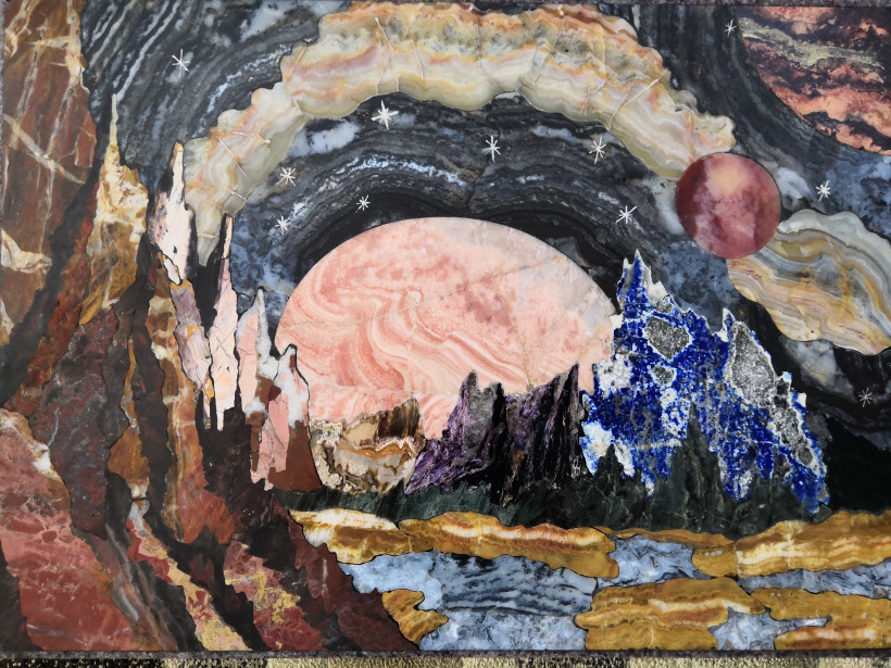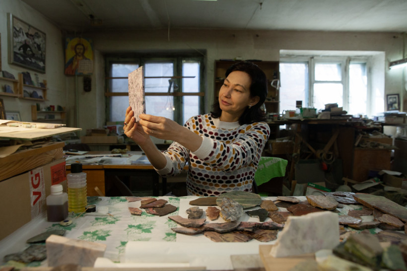 С 2004 года и почти двадцать лет, практически полжизни в ее 45, Анна Гусарева проработала в камнерезной мастерской в Белогорске в штате ООО «СК «Мост-Восток». Предприятие добывало камень для памятников, и попутно попадались другие минералы. Художники камнерезы перебрались туда, во вновь открытую камнерезную мастерскую. После голодных 90‑х это была работа мечты для художника. Получаешь стабильную зарплату и занимаешься любимым делом. Созданные мозаики камнерезы отдавали предприятию. Оно хранило каменные мозаики на складе, что‑то шло на подарки, что‑то продавалось.