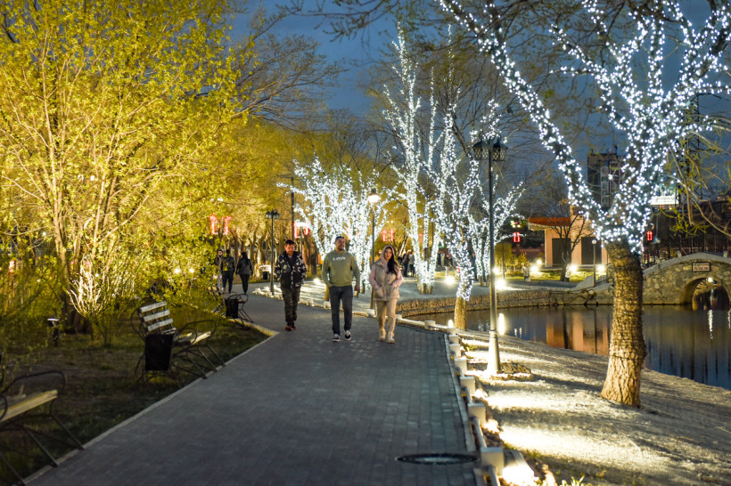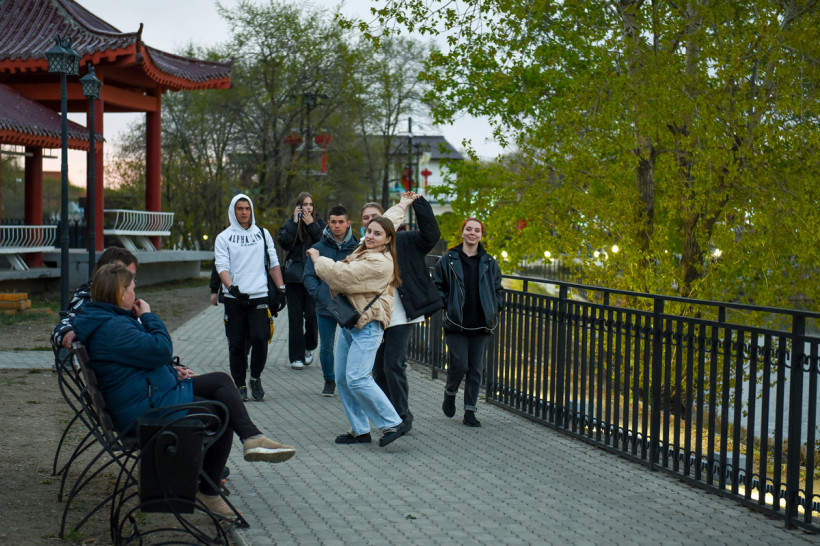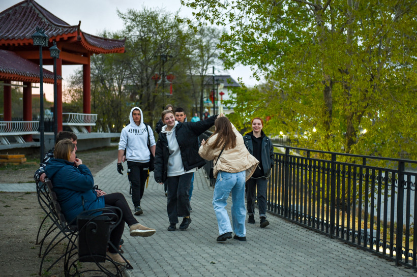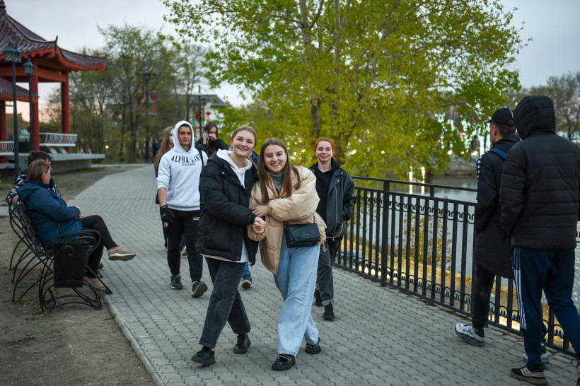 В благовещенском парке Дружбы, что в микрорайоне, заработал кинозал под открытым небом. Первый показ фильма состоялся 15 мая, все желающие смотрели «Счастье в конверте». Проект ОКЦ «Киновечера под открытым небом «Территория общения» стал победителем в конкурсе президентских грантов. И теперь все лето каждую среду с учетом погоды посетители парка могут с пледом и чашкой чая смотреть художественные, документальные фильмы или любительское кино амурских режиссеров, концерты и спектакли лучших мировых театров. Кинотеатр под открытым небом будет работать в южной части парка, в районе сцены. Фотокорреспондент «Амурской правды» прогулялся по вечернему парку и запечатлел одно из любимых мест отдыха горожан.