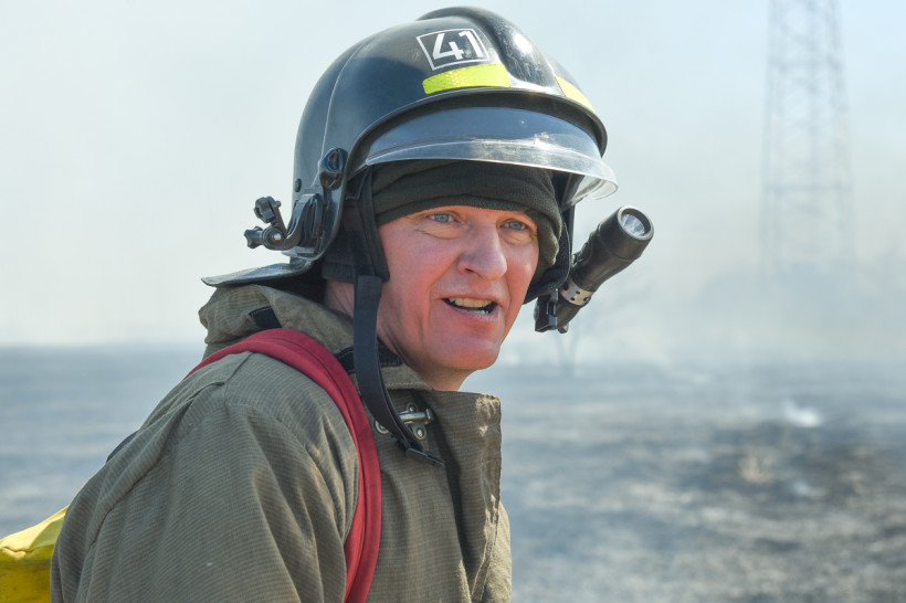 В первые минуты пожара в голове мелькает мысль: «Не потушат». Но вот с одной стороны огненная линия, по которой идут пожарные, резко обрывается, вместо оранжевого пламени становится все длиннее черная кромка сгоревшей травы. Чтобы убедиться, что пламя окончательно побеждено, Сергей Педько обходит линию огня. Еще некоторое время пожарные будут наблюдать за этим участком на случай, если огонь все-таки пробьется. Спокойно улыбаясь, начальник пожарной части снимает тяжелую куртку. Под ней насквозь мокрая футболка.