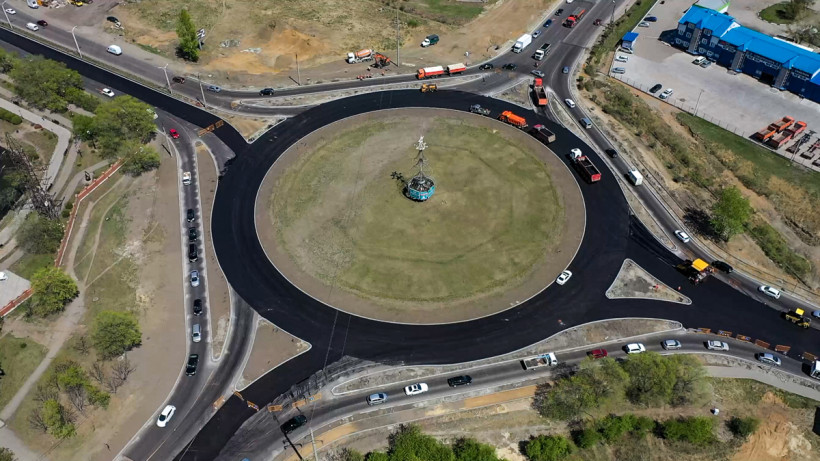 Несмотря на неудобство для дорожных рабочих, ремонт кольцевого перекрестка ведется с опережением сроков. На калининском круге завершена укладка верхнего слоя щебеночно-мастичного асфальтобетона. Теперь дорожники приступили к благоустройству перекрестка.