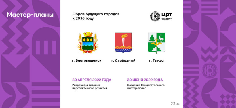 По поручению президента мы приступили к разработке мастер-планов городов Амурской области. В 2022 году разработаем стратегические документы по трем  городам — Благовещенск, Свободный и Тында, в 2023-м  по Белогорску и Циолковскому.