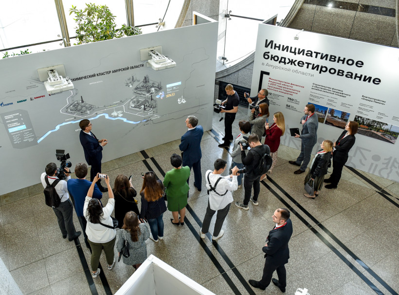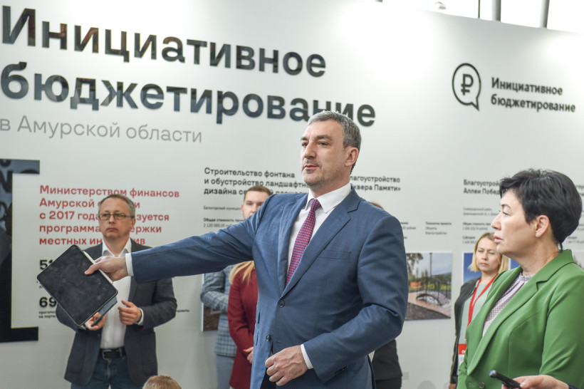 Обновленные по инициативе жителей сел и городов общественные пространства отражены в экспозиции «Инициативное бюджетирование». «Проект стал по-настоящему народным. В рамках инициативного бюджетирования воплощены в жизнь 512 проекта по благоустройству городов и сtл Амурской области, они стали местом притяжения населения. В этом году будет реализовано ещt 132 проекта», — сообщили губернатору.