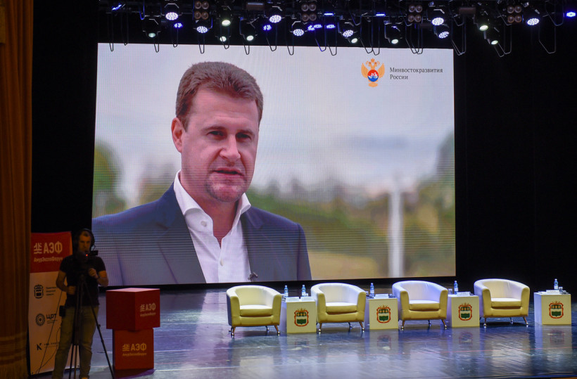 Участников долгожданного «АмурЭкспоФорума» поприветствовали в видеорежиме министр по развитию Дальнего Востока и Арктики Алексей Чекунков, а также дипломаты — генеральный консул КНР в Хабаровске господин Цуй Гоцзе и генконсул РФ в Харбине Владимир Ощепков.