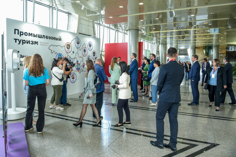 Приковывает внимание экспозиция о промышленном туризме. Главная точка притяжения туристов — конечно, космодром Восточный. По словам руководителя Туристско-информационного центра области Ольги Обыдённых, с февраля уже 81 организованная туристическая группа посетила стартовую площадку. Всего разработано более 10 промышленных туров. Среди них — поездки на три ГЭС, автомобильный мост в Китай, МЭЗ «Амурский», прииск Соловьеский, где можно увидеть три вида добычи золота.