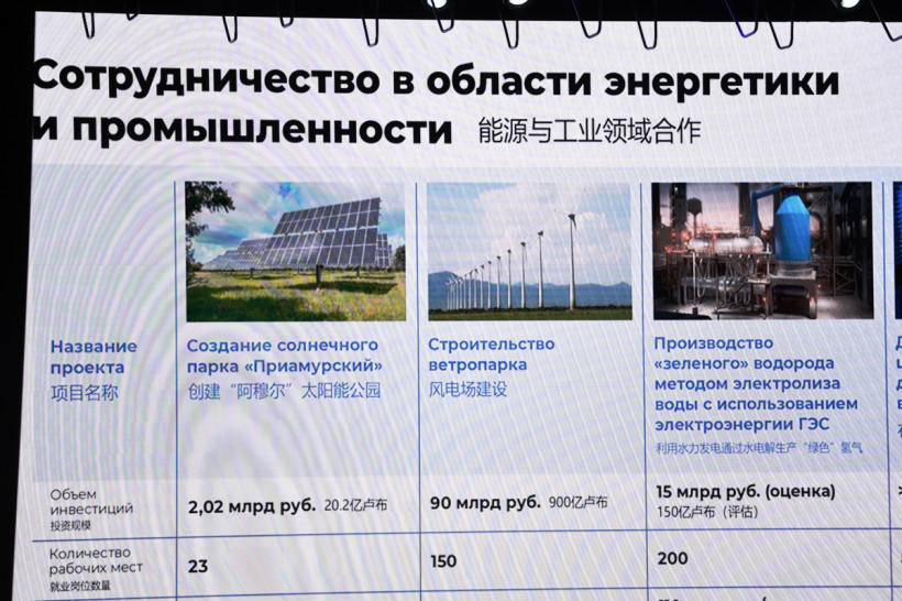 Завод может быть построен в Бурейском районе, объем производства около 300 тысяч тонн «зеленого» водорода в сутки. Предприятие даст 200 рабочих мест. Инвестиции оцениваются примерно в 15 миллиардов рублей, срок реализации до 2030 года. Потенциальные рынки сбыта — Китай, Япония, Корея.