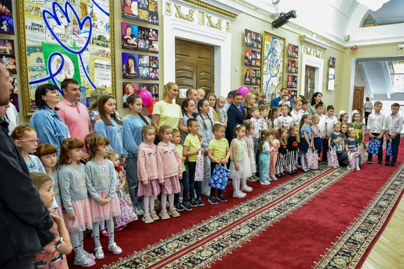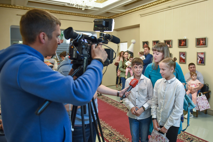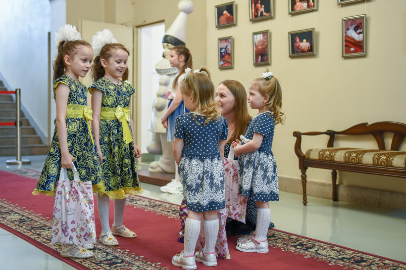 Первой локацией, где мальчишки и девчонки знакомились с другими гостями, стало фойе театра кукол. На входе юных гостей, похожих друг на друга как две капли воды, приветствовали стильные девушки в красивых голубых костюмах. И сразу же вручали небольшие подарки. По дороге на следующий «этап», то есть в зрительный зал, ребят ожидали около двух десятков журналистов и фотографов.