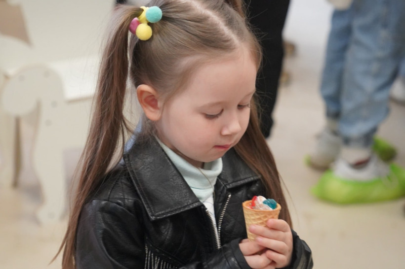 На празднике детства любителям мороженого предстояло выполнить множество самых разных заданий, чтобы заработать жетоны и обменять их на тематические сладости. Как уверяют организаторы, без мороженого не остался ни один ребенок. Обмен проводили мороженщицы в нарядных чепцах и фартуках в холле здания.