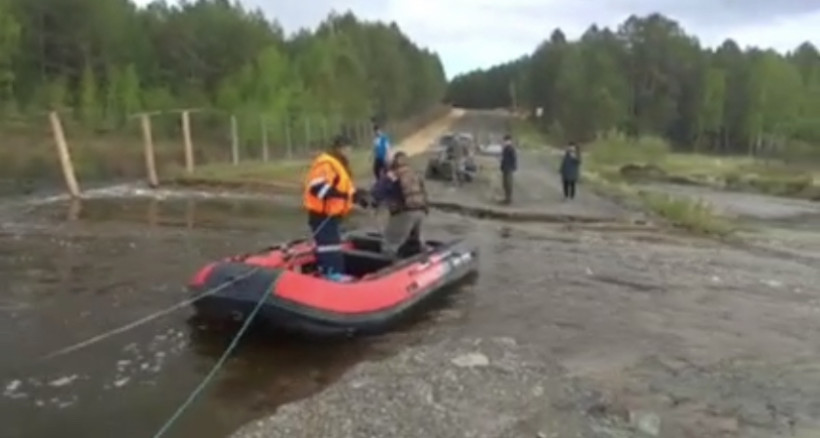 Спасатели Амурского центра гражданской защиты и пожарной безопасности на участке перемытой дороги организовали там канатно-лодочную переправу.