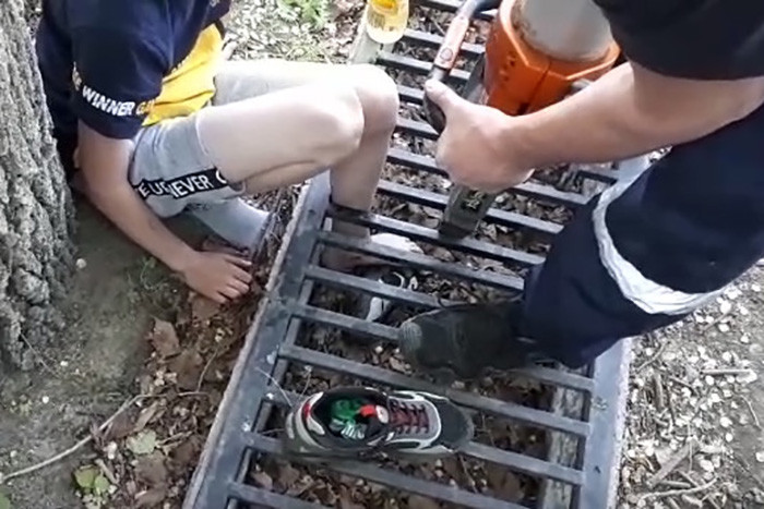 В столице Приамурья мальчик играл во дворе и умудрился застрять ногой в водоприемной решетке. Подсолнечное масло, которое использовали очевидцы для спасения парня, не помогло, тогда они вызвали профессионалов.