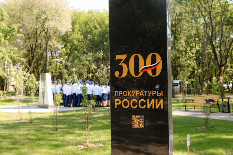 В сквере установлена стела из камня и мрамора, на которую нанесен QR- код. По нему можно зайти на сайт Генеральной прокуратуры РФ и получить информацию об истории российской прокуратуры.
