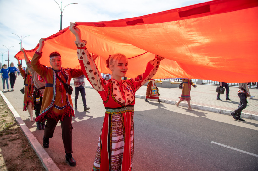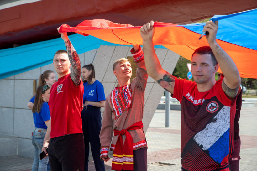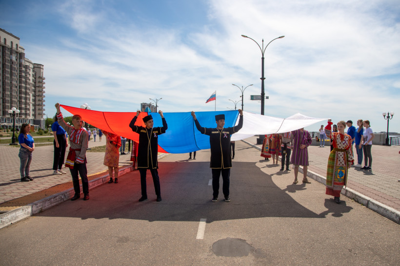 Молодые благовещенцы прошлись по набережной города с огромным флагом