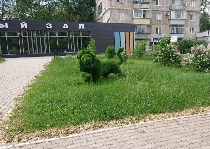 Топиарная фигура льва — одна из трех пострадавших от рук неизвестных — вернулась на площадку перед МФЦ. Лев пережил реставрацию и переехал ближе к тротуару, чтобы не страдал газон от многочисленных фотосессий.