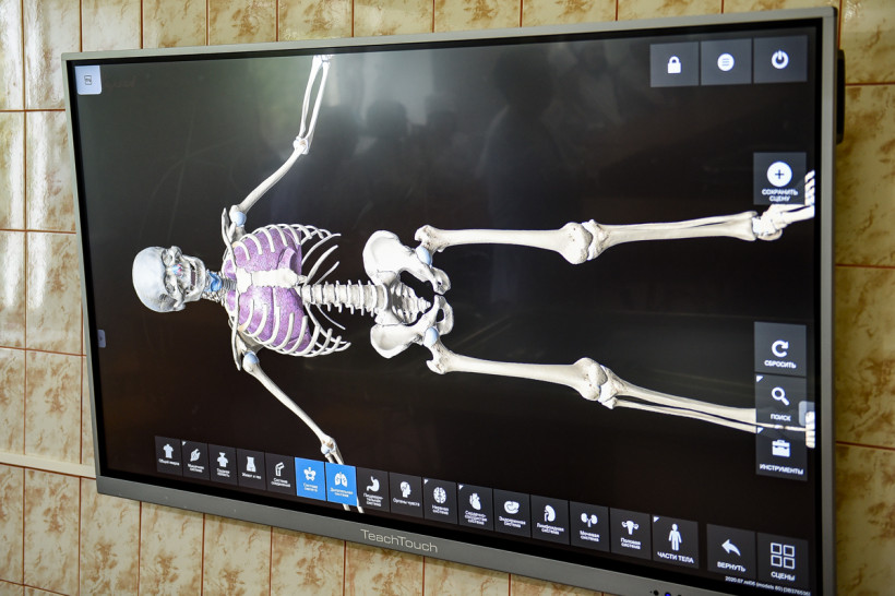 Четыре интерактивных демонстрационных жидкокристаллических панели, на которых можно транслировать изображение строения человеческого тела, служат дополнением к самому анатомическому столу «Пирогов» и находятся в соседних с ним кабинетах. На этих сенсорных экранах также можно показывать и учебные видеофильмы для студентов.