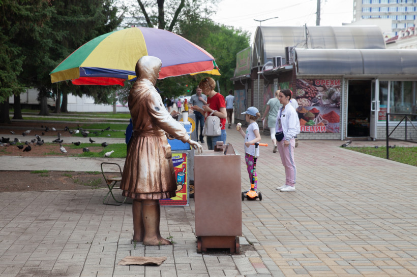 В наших силах сохранить память о простом, добром человеке — продавщице мороженого, любимой всеми Снегурочке. Кстати, это единственная такая скульптура в России».