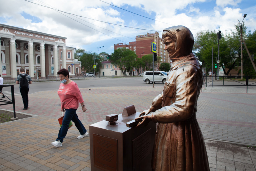 Памятная благовещенцам скульптура установлена в сентябре 2013 года, в следующем году ей будет 10 лет.