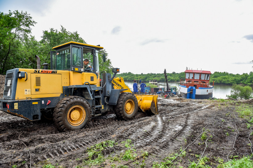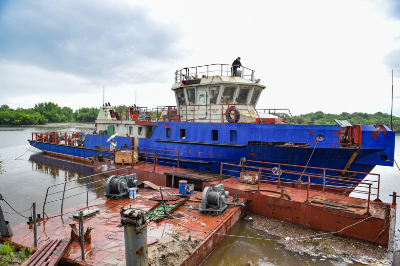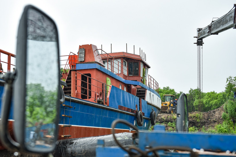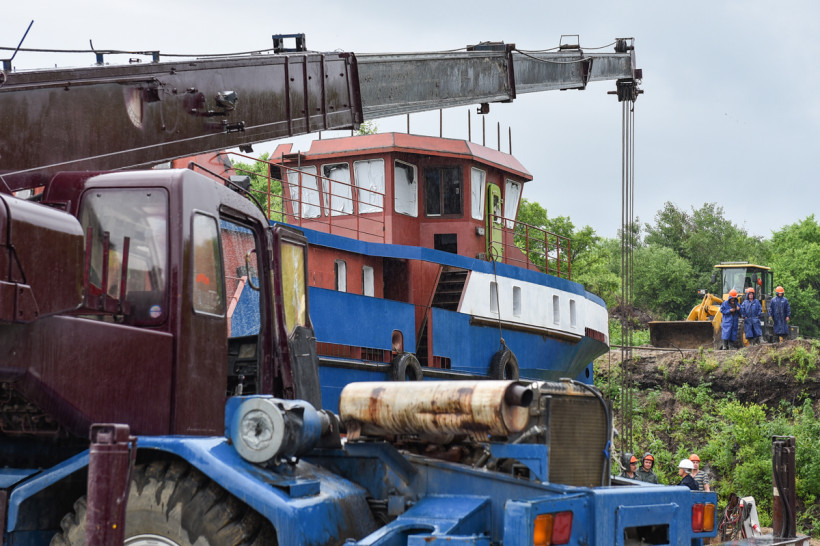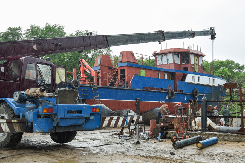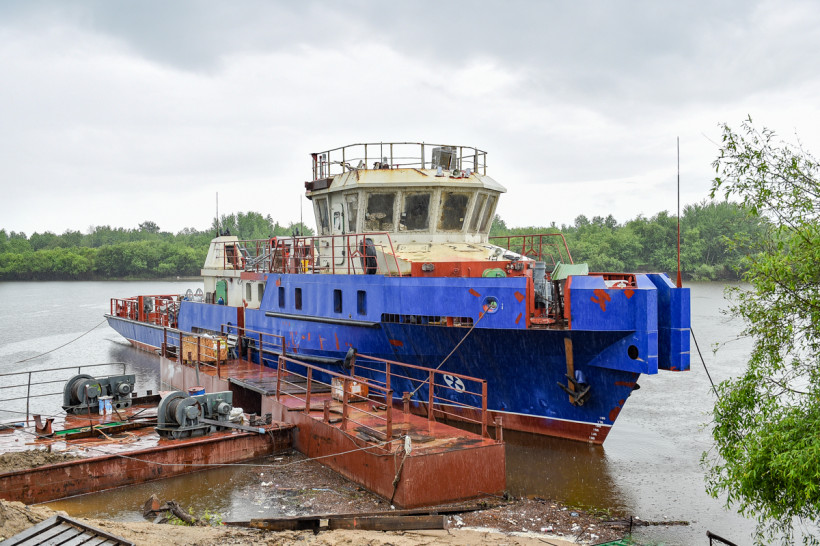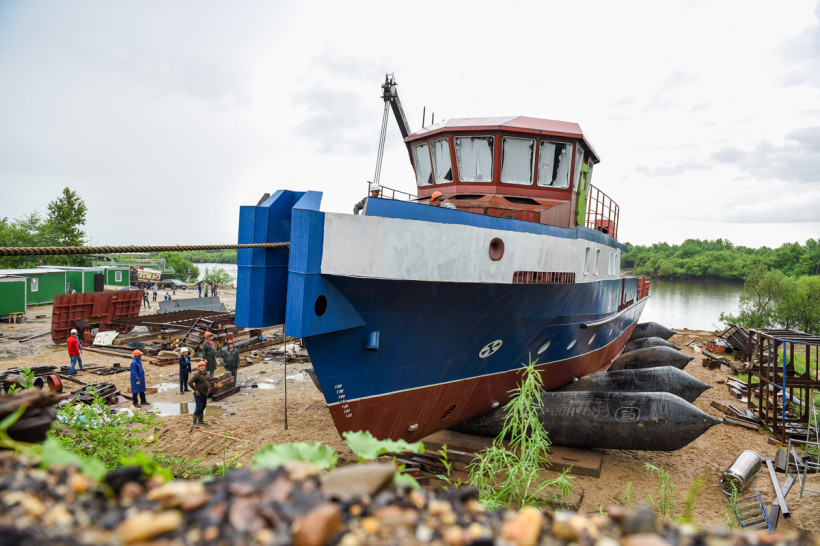 — Потихонечку, с помощью нескольких устройств и пары-тройки единиц техники, перекатываем судно к воде, — поясняет корреспонденту «Амурской правды» главный строитель проектов компании Евгений Семёнов. — Теплоход спокойненько, с подстраховкой бульдозера или другого более тяжелого оборудования, за счет инерции окунает корпус в реку.