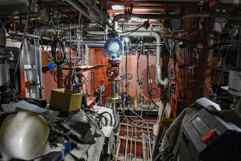 Каюты, пусть и не слишком большие, зато вместительные и весьма уютные. Когда достроечные работы завершатся, их оборудуют всей необходимой мебелью, поставят кровати, столы, стулья. В бытовых помещениях заметили проложенные водопроводные трубы. Буквально на днях по ним потечет вода. Практически завершена электрификация судна, осталось доработать некоторые нюансы, и во всех помещениях можно будет включать свет, пользоваться розетками.