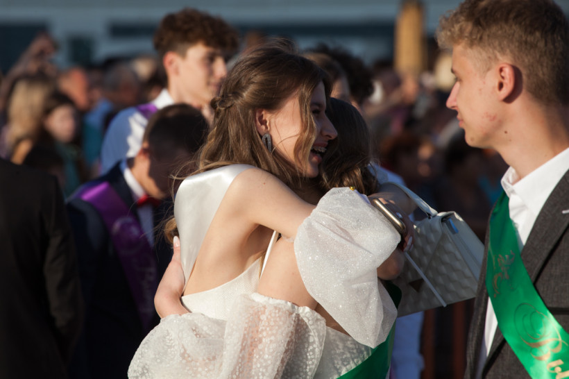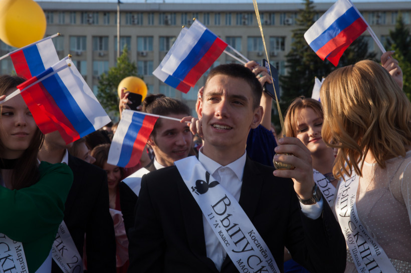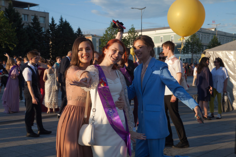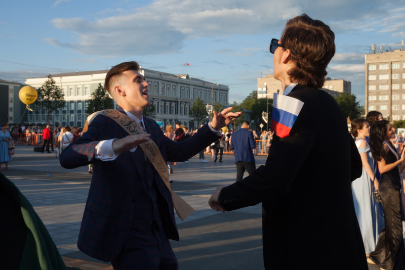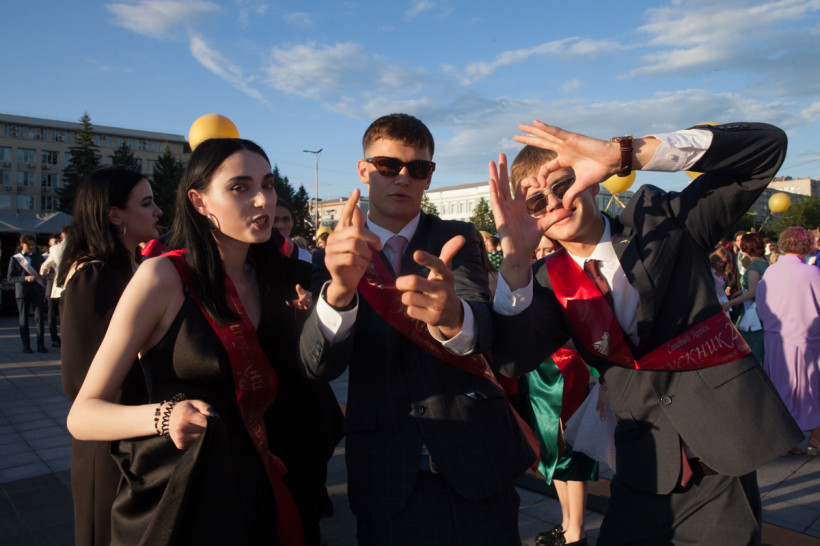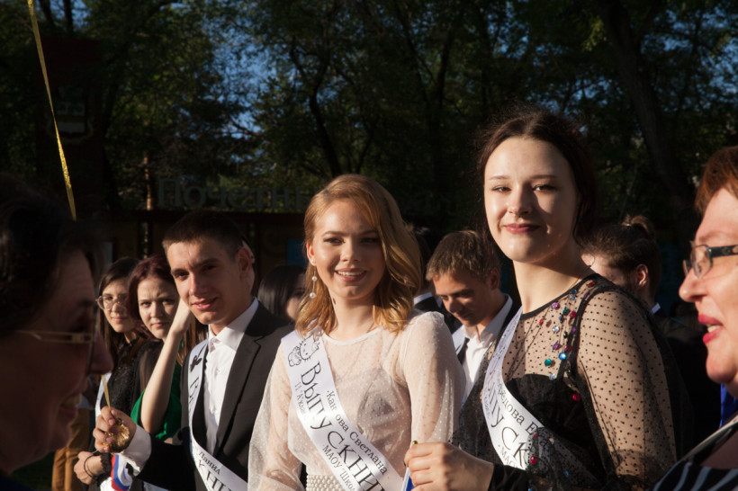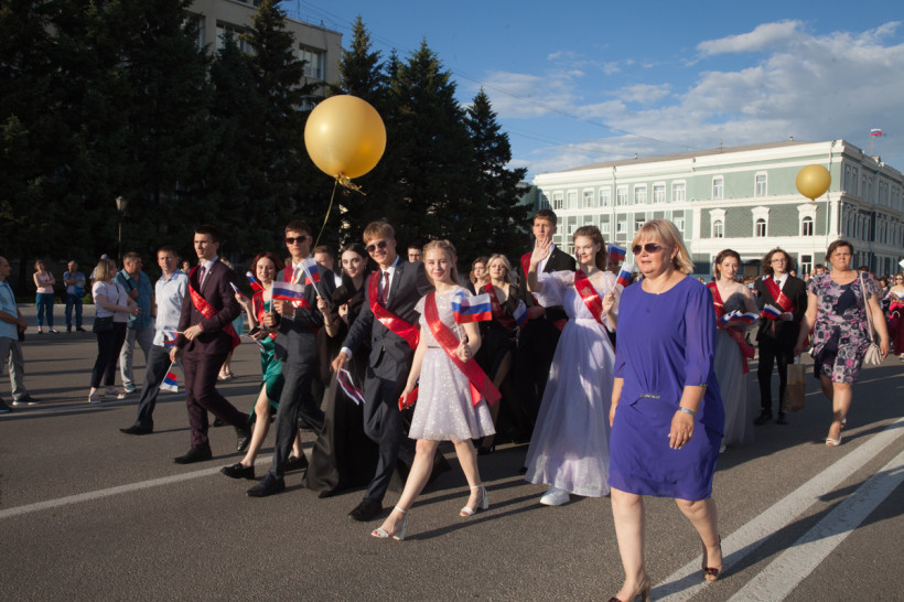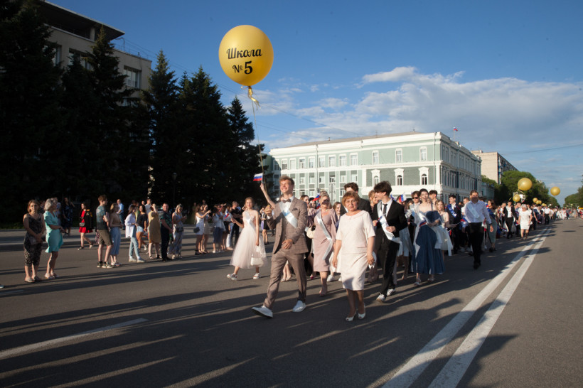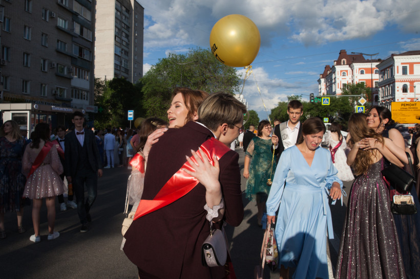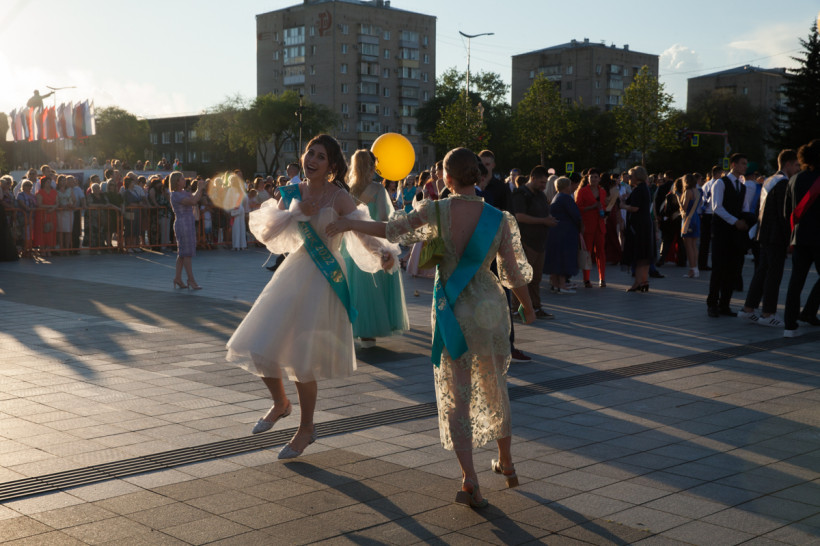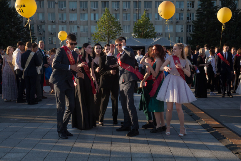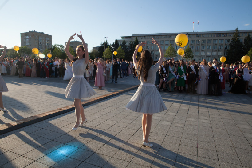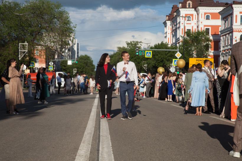 На площади Ленина 25 июня посмотреть на нарядных выпускников собрались не только их родители и родственники, но и обычные горожане. В этом году более 1 200 бывших одиннадцатиклассников прошли по главной улице колоннами навстречу друг другу от Пионерской и Шимановского. Уже на площади молодежь, вступающую во взрослую жизнь, поздравили зампредседателя правительства региона, министр образования и науки Амурской области Светлана Яковлева, мэр города Благовещенска Олег Имамеев, и. о. председателя Благовещенской гордумы Степан Попов. Выпускники поучаствовали в интерактивной программе, станцевали вальс и послушали выступление кавер-группа DolceDisko. Весь вечер на Ленина работала фотовыставка «Мой выпускной», на которой было представлено более 100 снимков от горожан. На празднике побывал фотограф «Амурской правды» Владимир Воропаев.