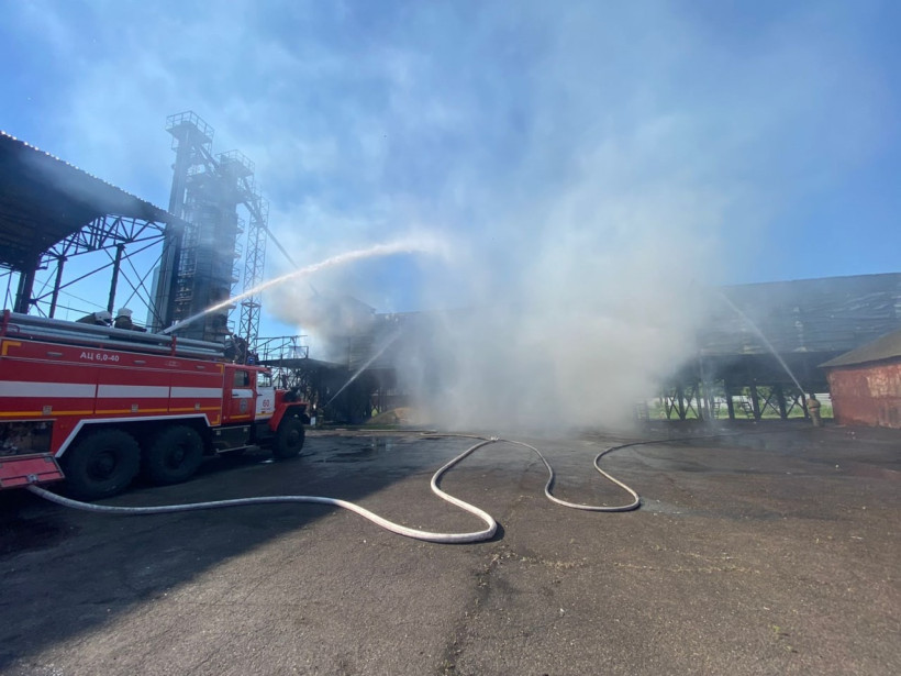 Пожарные Тамбовского района ликвидируют крупный пожар на территории зернохранилищного комплекса с соей. Он загорелся утром 1 июля в селе Козьмодемьяновка Тамбовского района.