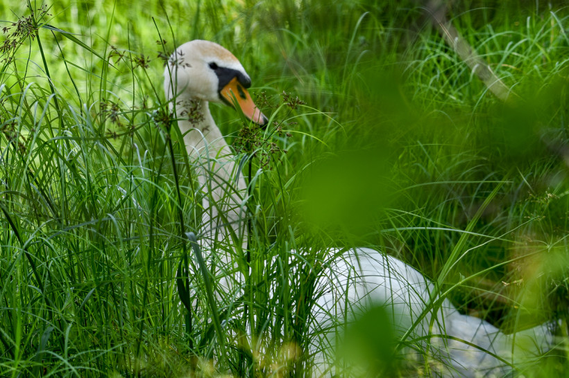 Оказалось, что краснокнижная птица уже вывела потомство в густых зарослях. Супруги предполагают, что семей уже две — Татьяна Ивановна на днях сняла на видео два свободно плавающих выводка. Причем хитрые уточки вычислили, куда подсыпают еду лебедям и тоже ходят к кормушке.